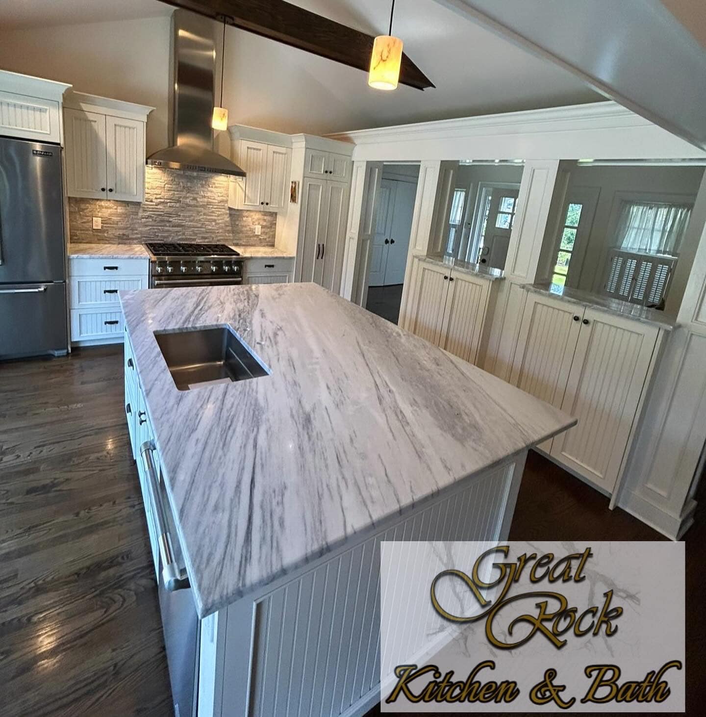 Antiquity is a popular natural stone, often sold as a durable quartzite, known for its elegant, marble-like appearance with creamy grey, white, and darker grey veining, making it a beautiful and resilient choice for kitchen and bathroom countertops, offering the look of marble with superior hardness and heat resistance. It blends well with various cabinet colors, creating a crisp, clean, or sophisticated look.