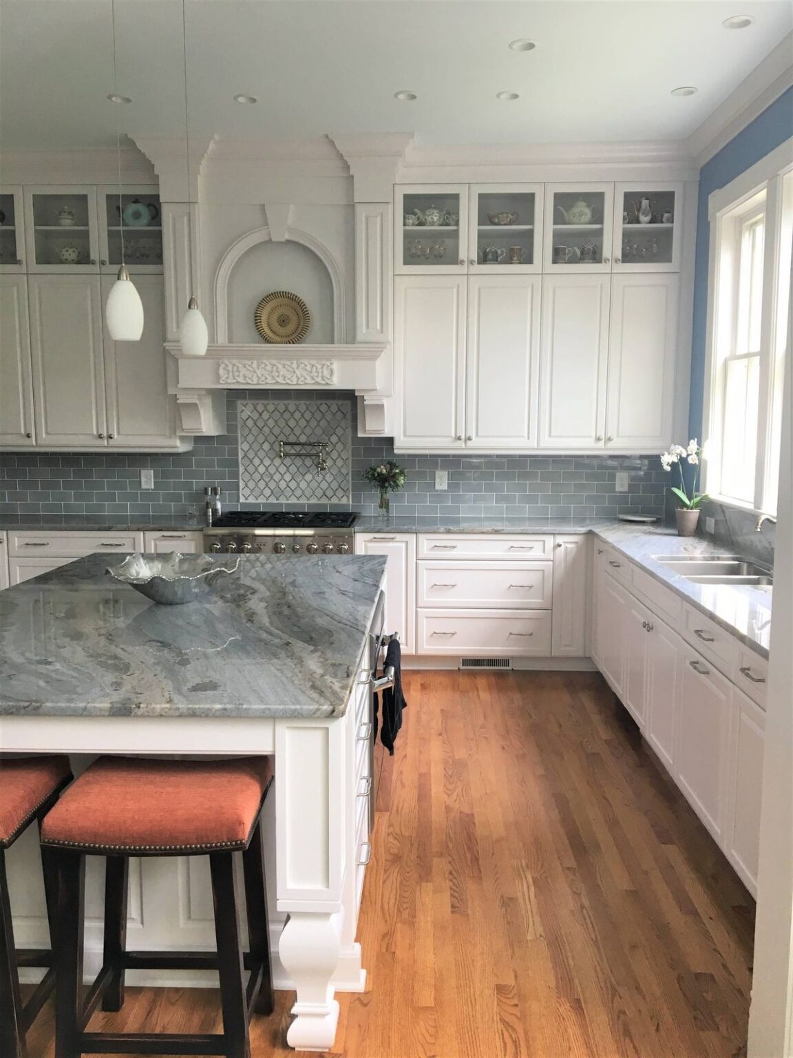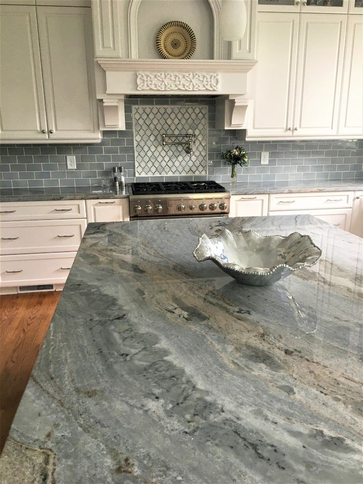 Azurite Quartzite is a durable, natural metamorphic stone known for its striking steel blue, grey, and white veining, which gives it an elegant and luxurious appearance often resembling marble. Its hardness makes it a highly durable material suitable for high-traffic areas like kitchen countertops.