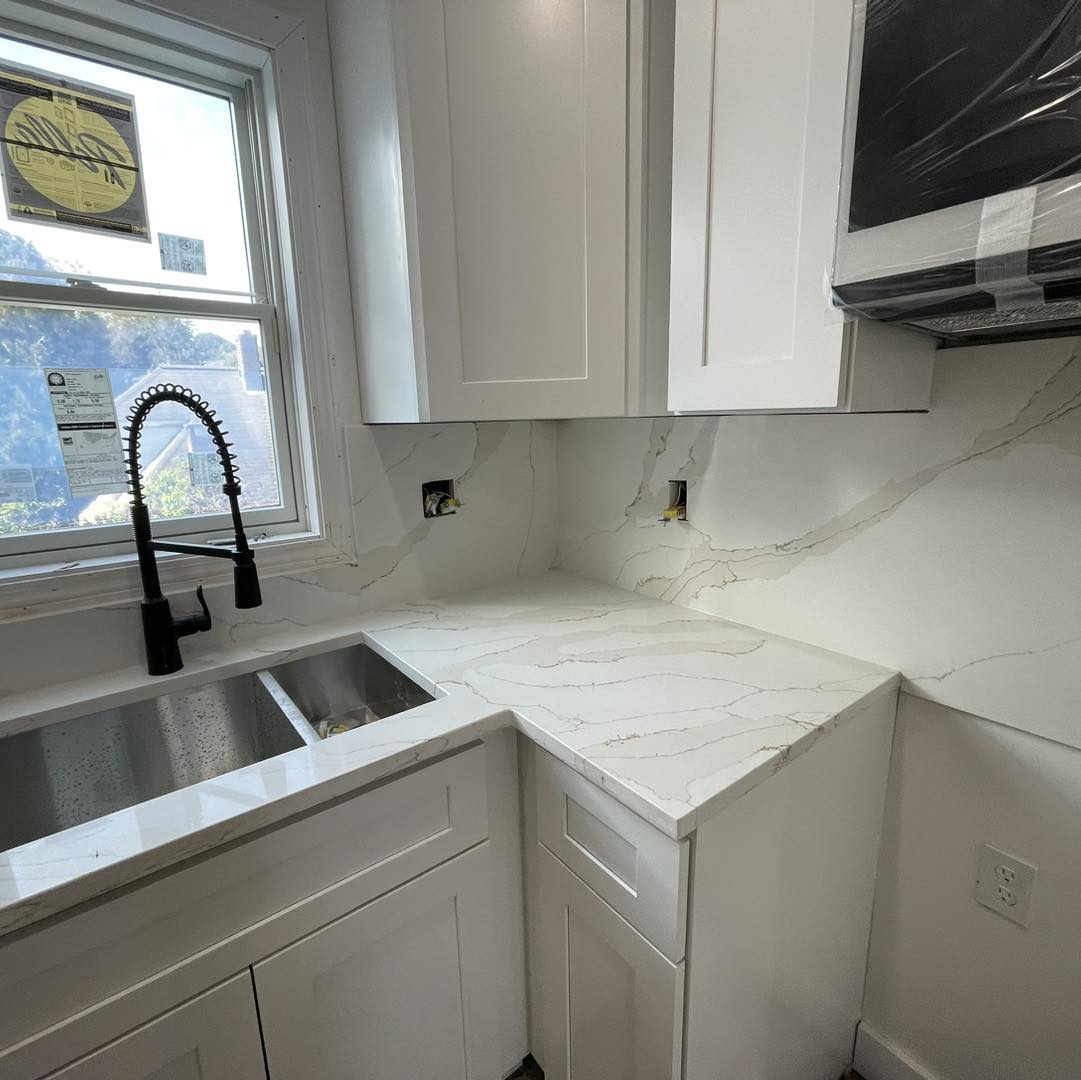 Introducing this beautiful quartz, with gray and brown veins, the perfect match to elevate any space in your home. You can use it for vanities, laundries, and many other areas.