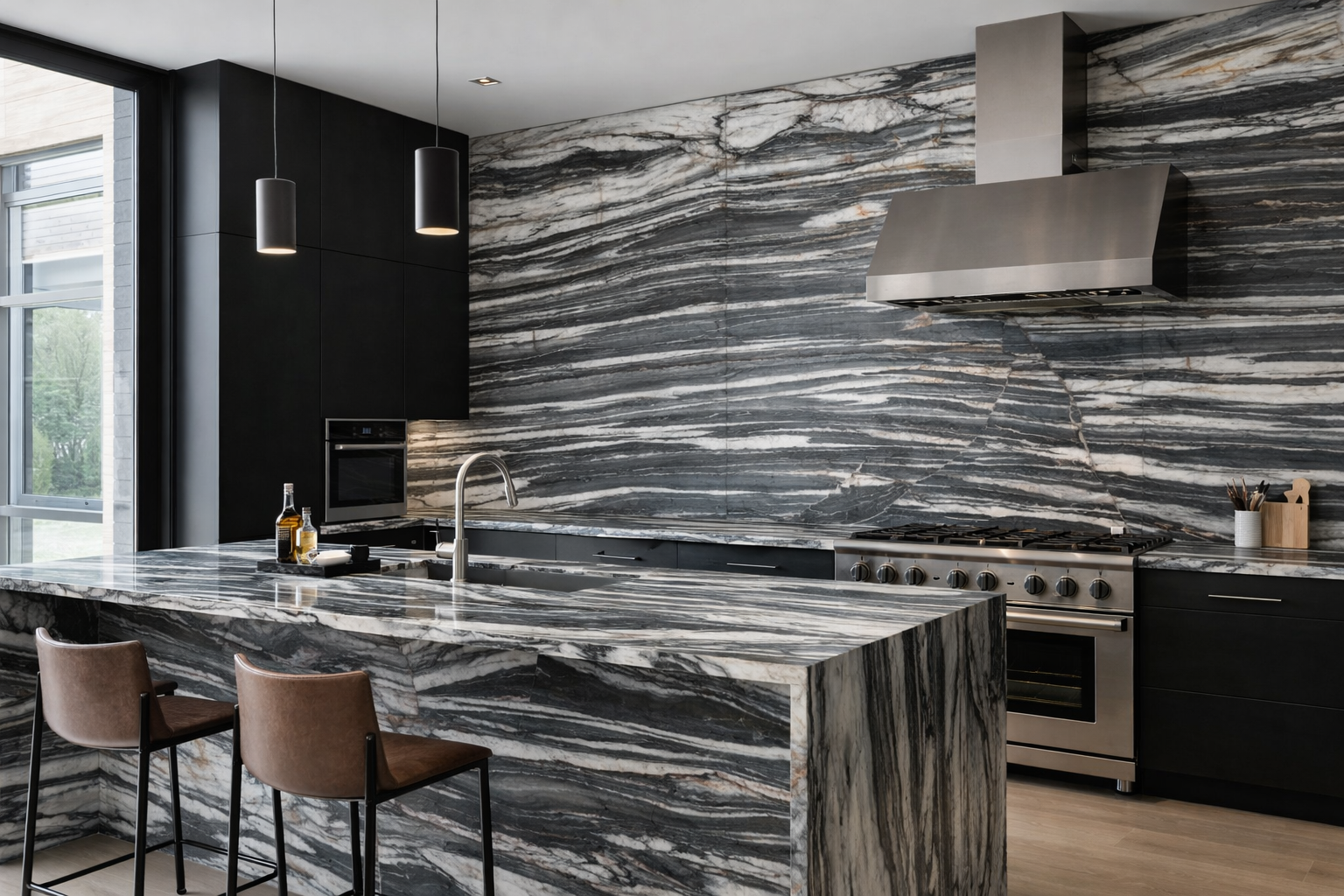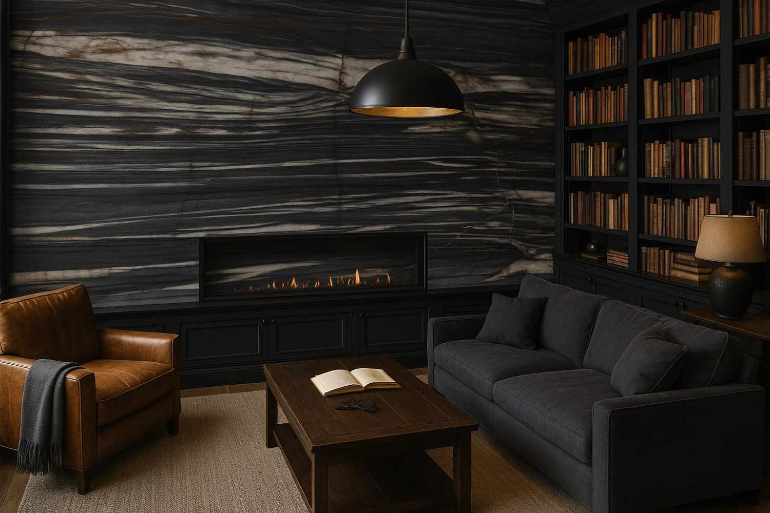 Midgnight Crystall is a kind of black, white and grey stone quarried in Brazil. Deep slate canvas streaked with bright ribbons and copper hints, a bold centerpiece surface. This stone is especially fabulous for countertops, vanitites, fireplace, walls bathroom, and other design projects.