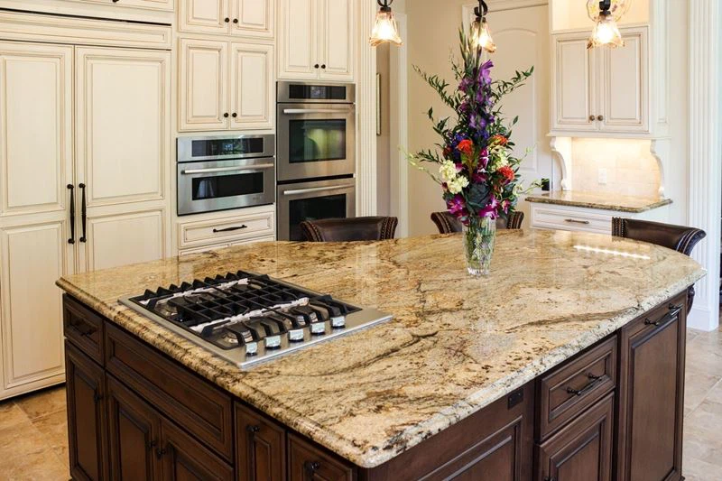 Siena Beige is a beautiful, rustic granite with a white background and dark brown veins with burgundy accents. This granite is sure to impress as a kitchen countertop, bathroom vanity top, fireplace surround, floor or as a part of an outdoor living space.