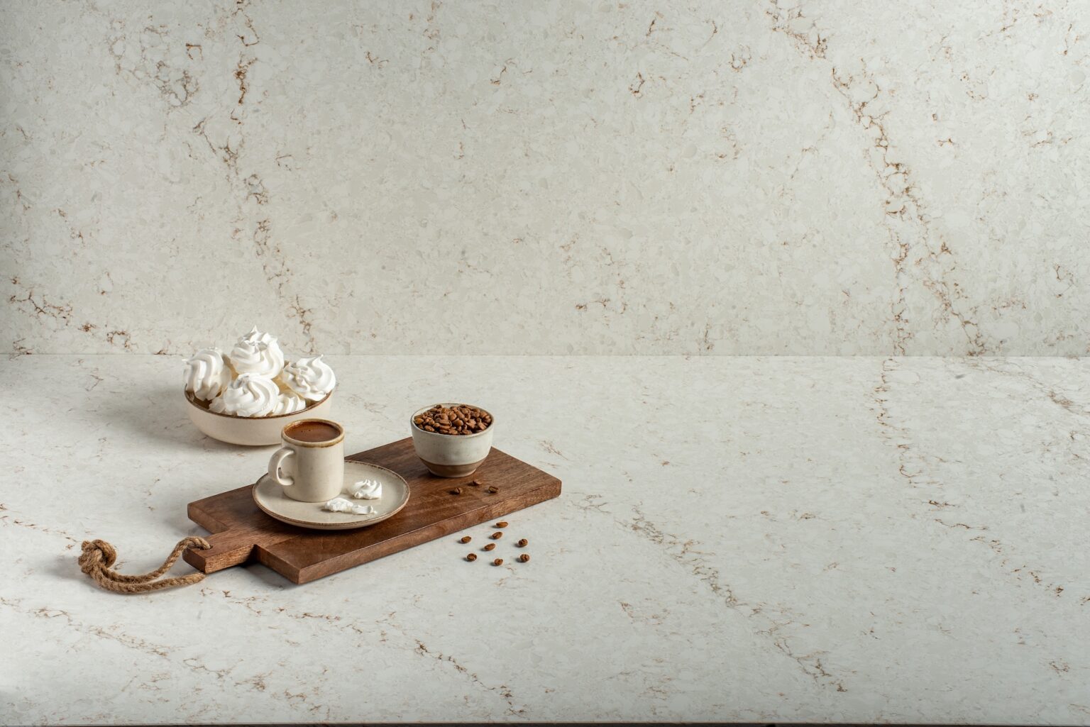 Introducing this beautiful quartz, with brown veins, the perfect match to elevate any space in your home. You can use it for kitchens, vanities, laundries, and many other areas.