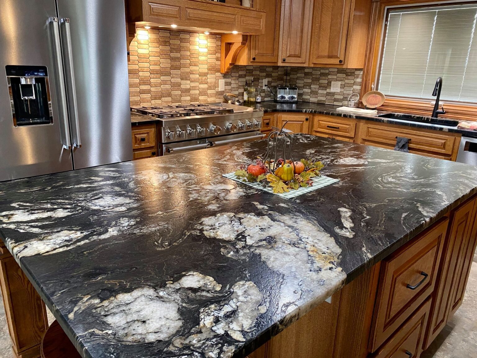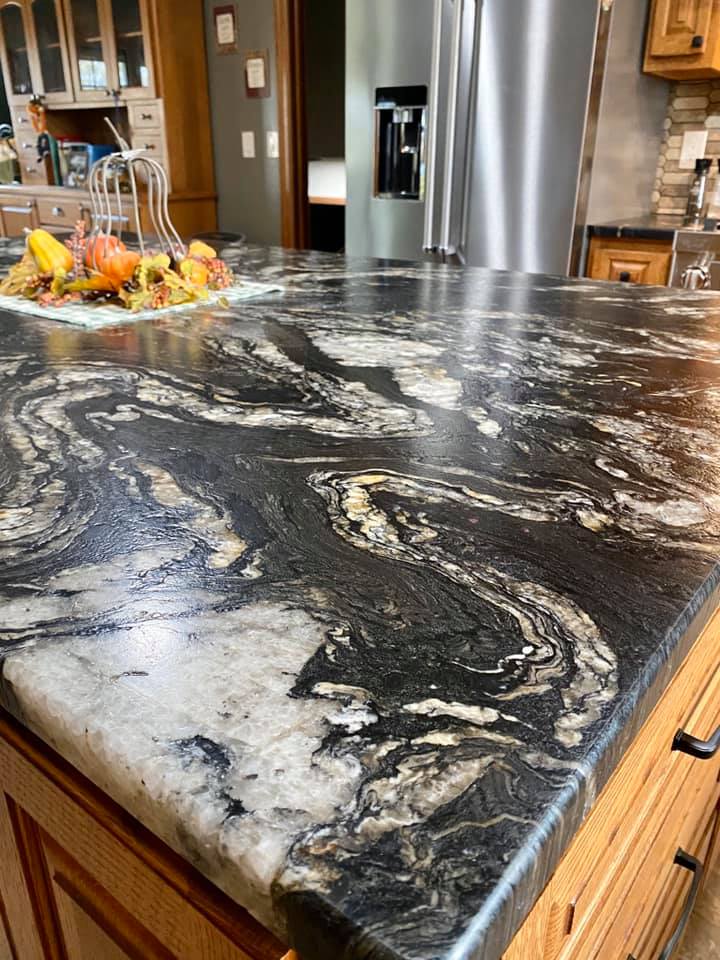 Titanium Granite from Brazil is filled with elegant movement of grays, blacks, golds, creams and ivory. This durable granite is perfect for any indoor or outdoor project in freezing climates and can include landscaping, countertops, fireplaces, kitchens and bathrooms.